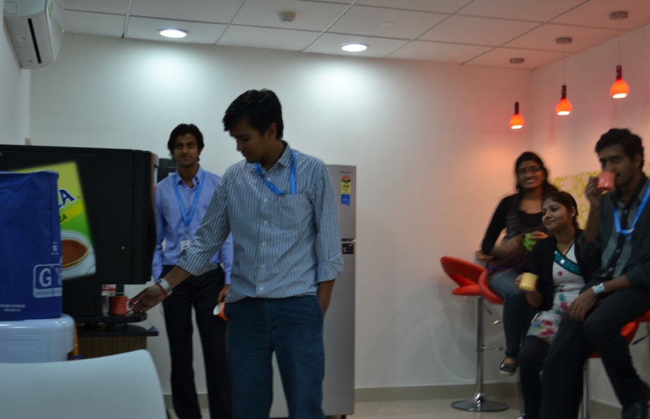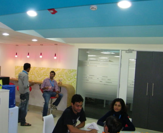 when we are in the mood to ideate, we take along our color pens and our buddies and scribble stuff on our walls everywhere.. we could work from next to our coffee machine (yes we are wired as well as wireless everywhere), or we huddle on our bean bags in the break-out space.. yes we are connected there too.. If at all we need some alone time with our laptops, thats possible too, we just need to move into one of the kiosks…